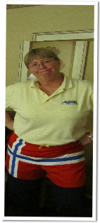 I celebrate my Norwegian heritage whenever possible. At one Solørlag Stevne (Convention) I bid for a pair of Norwegian swim trunks in the silent auction. I lost the bid but was thrilled when I was awarded the trunks the next year at the Gals Late Night Party.